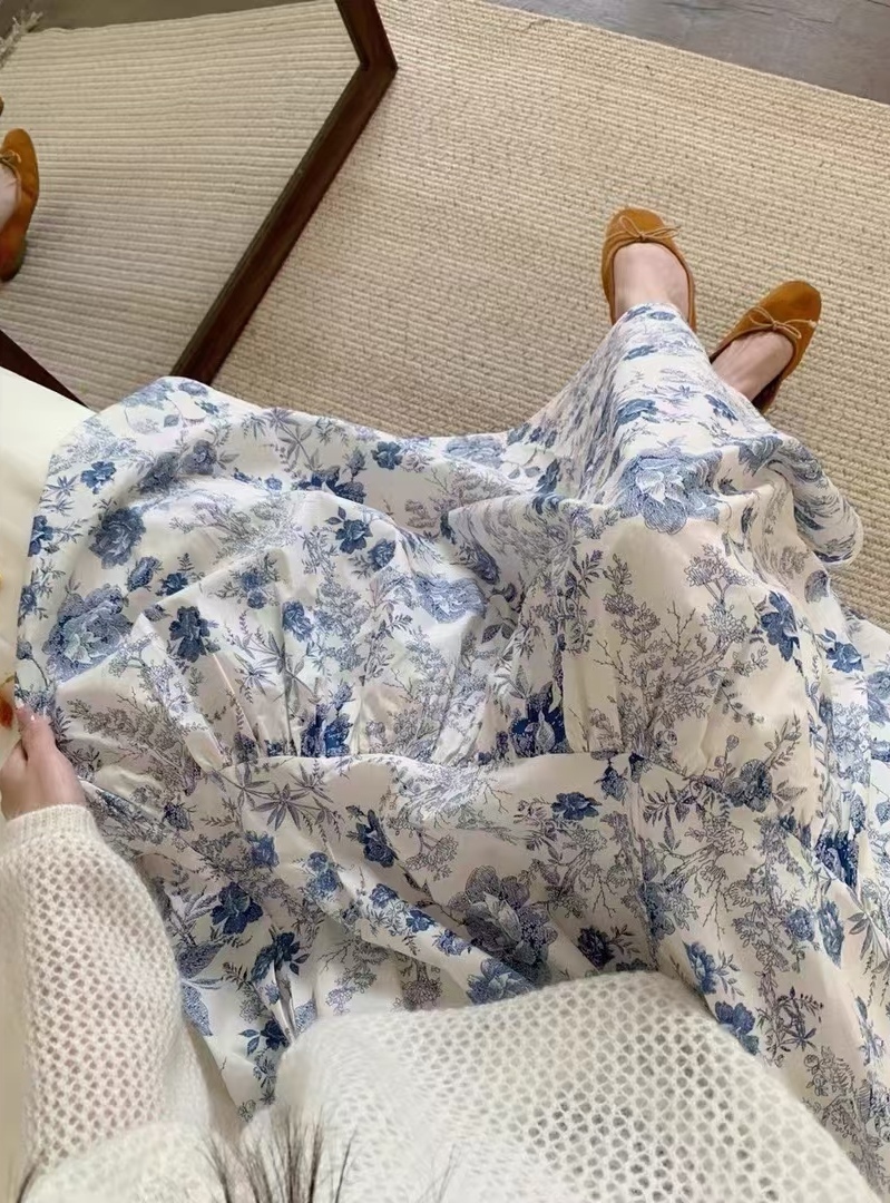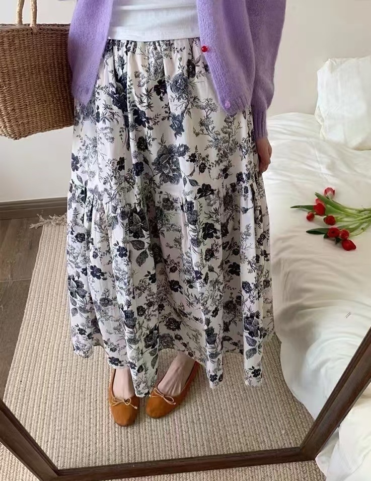 滑料印花棉質半截裙(腰25~40寸 長32.5寸)